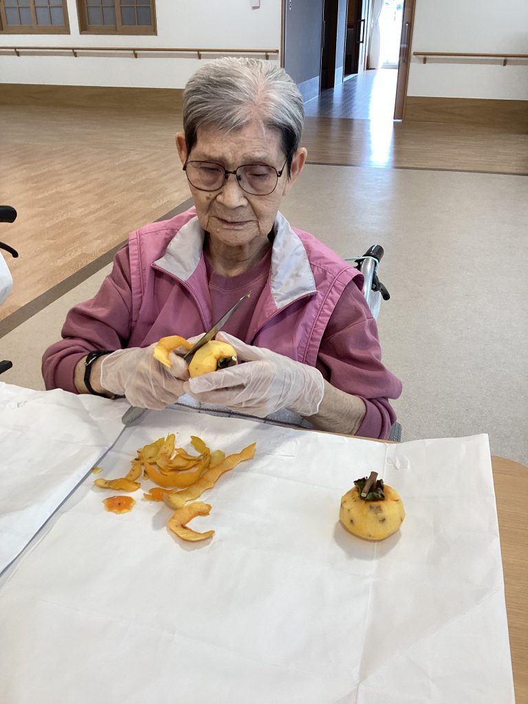 柿の皮をむいてから紐で括り風通しのよい場所に干しました