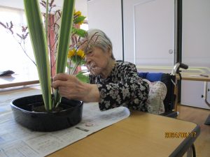 つきおかの里では、月に一度クラブ活動として生け花を活けています。
