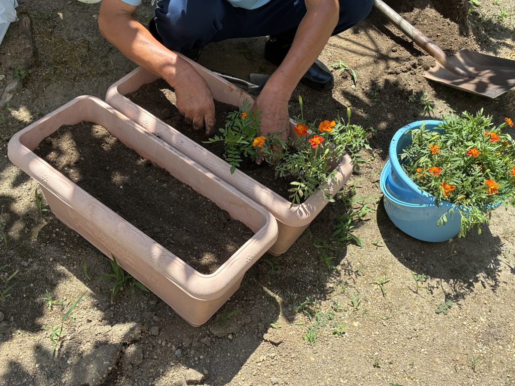オレンジ色の花を咲かせることで施設がとても明るく感じました!