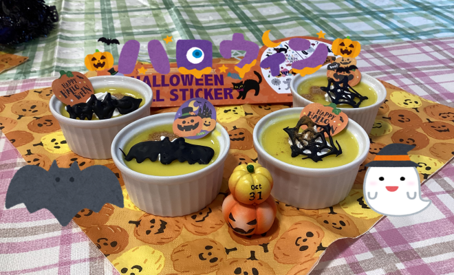 ハロウィンということで、かぼちゃプリンを召し上がりました「見た目が最高」「甘い」「なめらかで美味しい」など皆さん喜ばれていましたご希望の方は仮装も楽しみました…