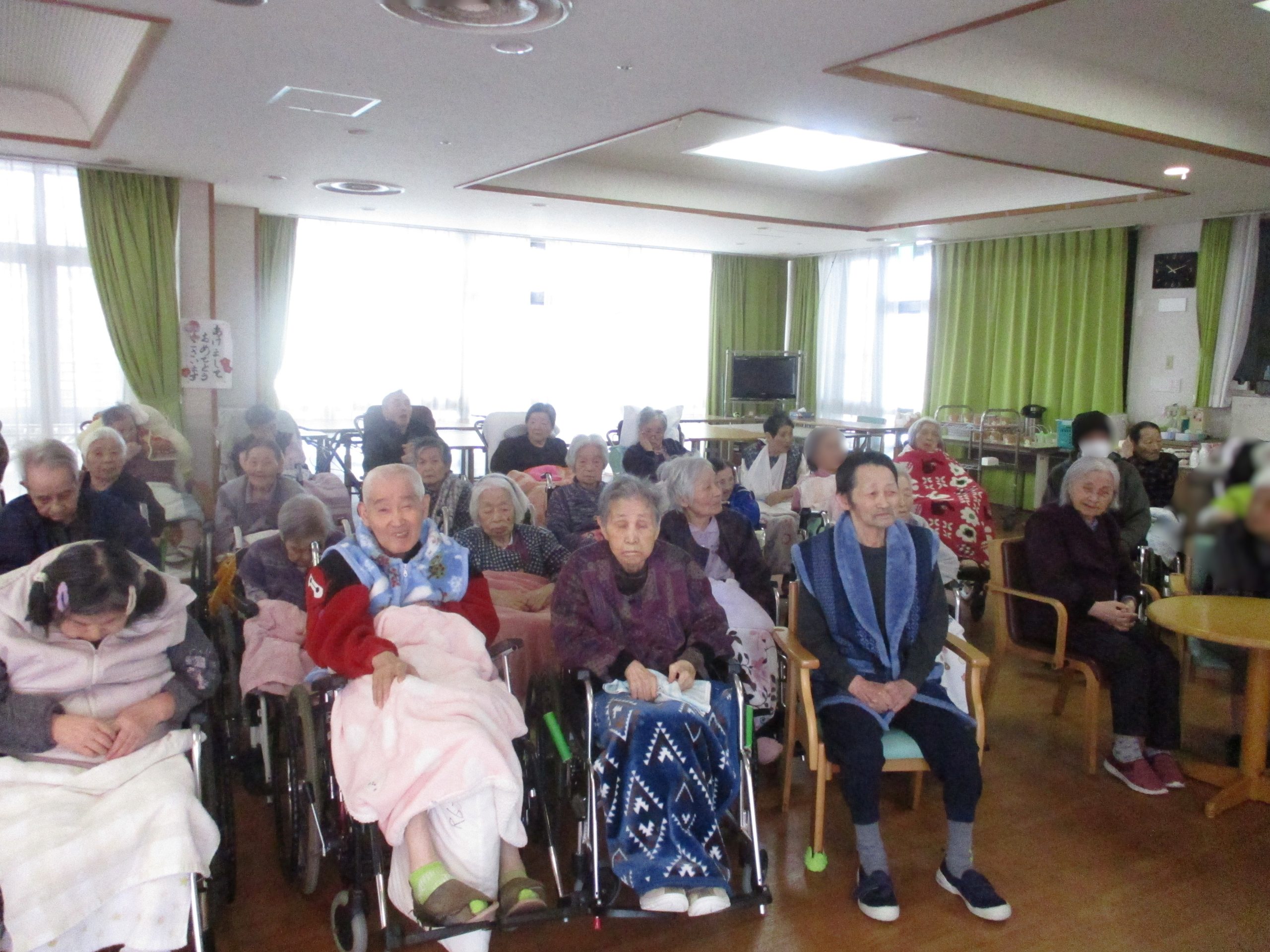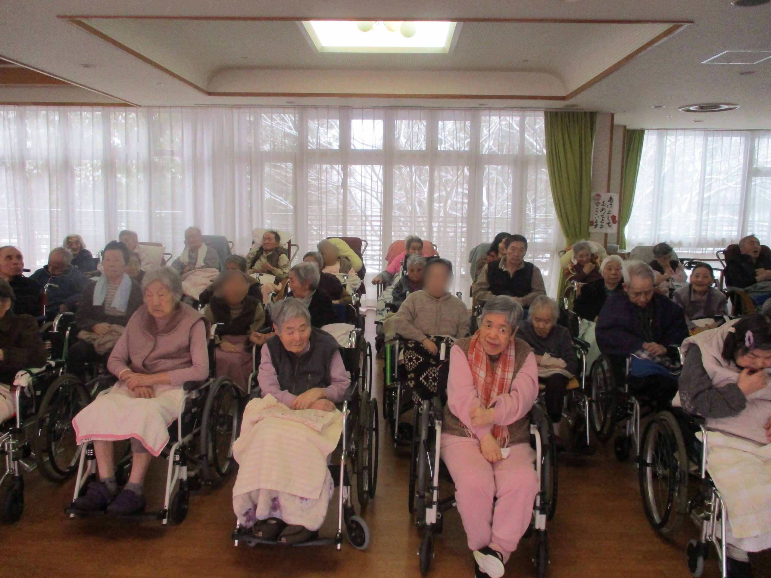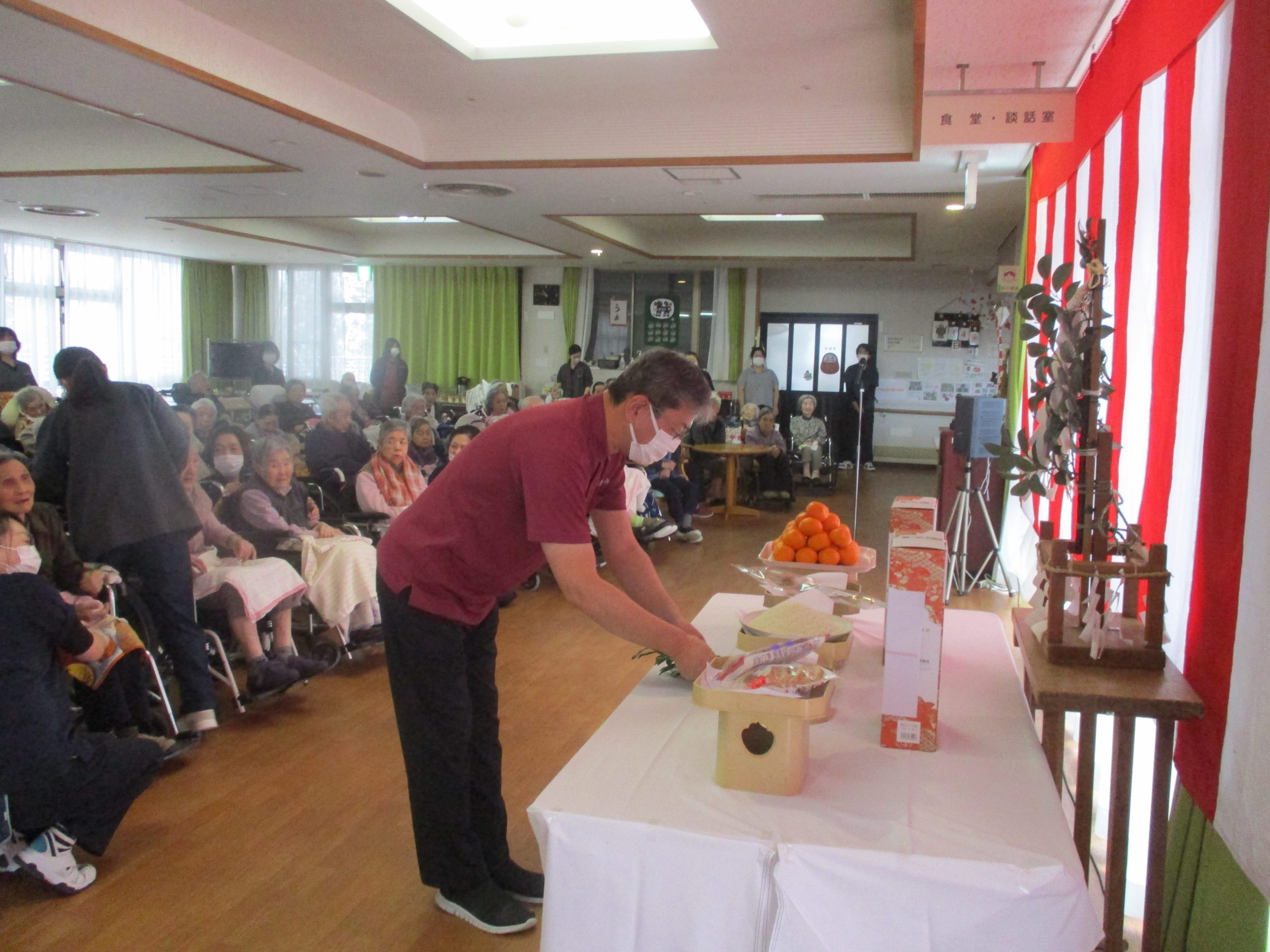 新年の行事として、利用者の皆さまと職員がともに立ち会い、1/14(水)に新年会を開催いたしました。