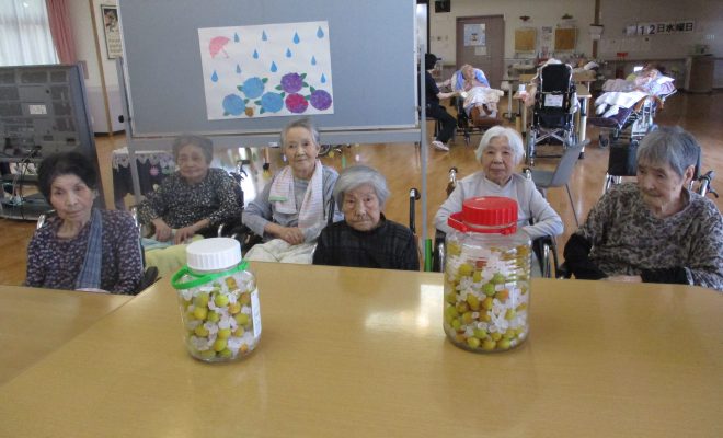 梅のヘタ取りや瓶詰めを職員と一緒に行いました。できあがったら皆さんでジュースにして召し上がる予定です。 …